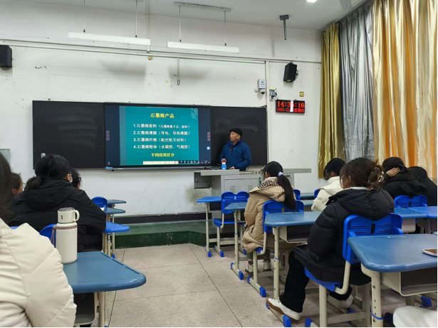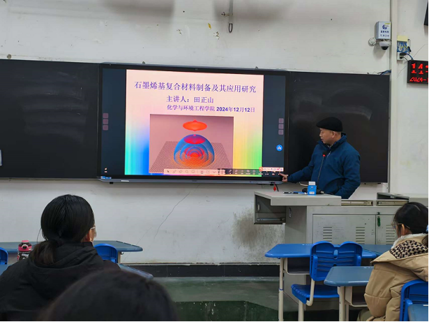 12月12日下午,世俱杯中国官网入口田正山博士在4101教室为世俱杯官网2024级化学1班同学作《石墨烯基复合材料制备及其应用研究》的学术报告。