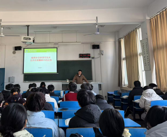 2024年12月18日下午,世俱杯中国官网入口耿喜宁博士在4号教学楼4105教室举办了学术讲座,报告题目为《植物多倍体诱导技术及其在粗糠树中的应用》,世俱杯官网2023级环境生态工程专业的学生聆听了本次报告。