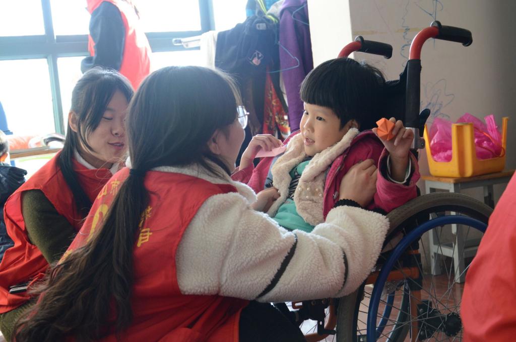活动伊始,志服部负责人给同学们发放了象征志愿者身份的红马甲,并告诉同学们这不仅是一件衣服,更是心中的爱与责任。同学们也牢记负责人的话,在到达孤儿院后,把提前给孩子们准备好的文具、面包交给院长。在与孩子们的相处中,又充分发挥自己长处,给孩子们讲故事,和他们一起嬉闹玩耍。在此期间,孩子们童真的表情以及他们脸上明媚的笑容,表现出他们对生活充满着希望,深深地感染着每一位志愿者。其中,让同学们记忆深刻是那个仅有一个月大的孩子,在每次别人拥抱他时都露出明媚的笑容。活动最后,志愿者纷纷表示:“这间院子多么温馨,我们给他们爱,他们也给我们来自心灵的美丽。如果有机会,我们一定会再来的”。