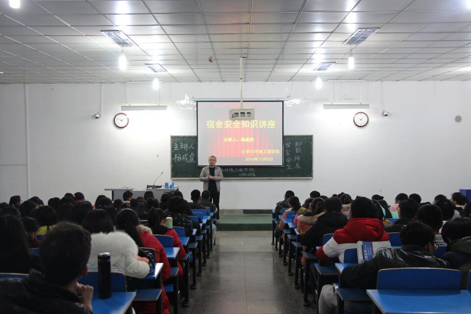 12月5日,世俱杯官网邀请学生处杨成虎副处长在4406教室为学生做关于安全知识的专题讲座。院系300名师生听取了讲座,本次讲座由世俱杯官网党总支副书记孙学荣主持。