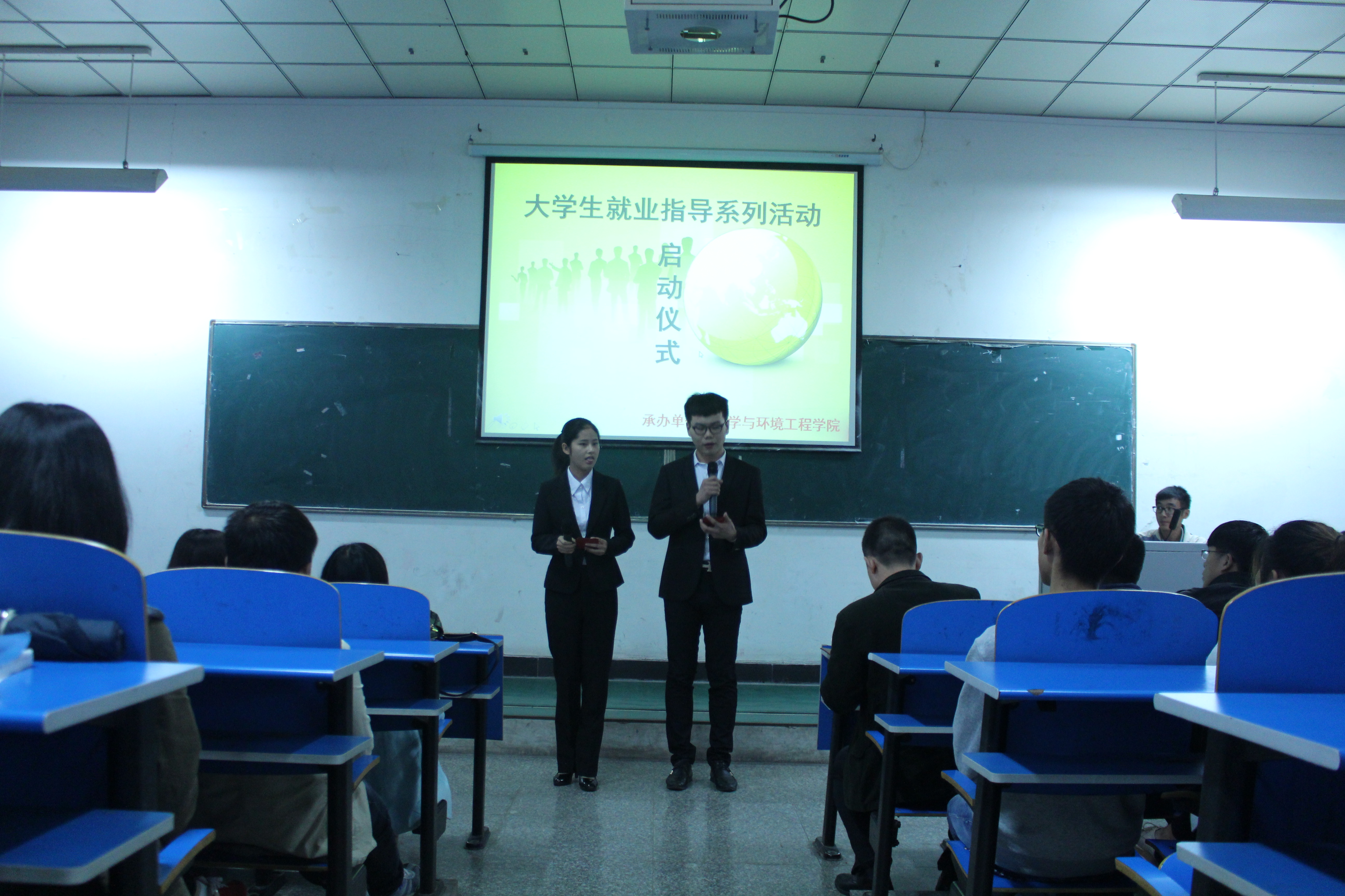 洪彦峰在启动仪式上宣读了大学生就业指导系列活动方案,罗世颖老师对本次活动致辞,她强调,在与考官的互动环节中,一定要扬长避短,体现个人所发挥的作用并且要注重团队精神。最后,由马国杰老师宣布此次系列活动正式开始。
