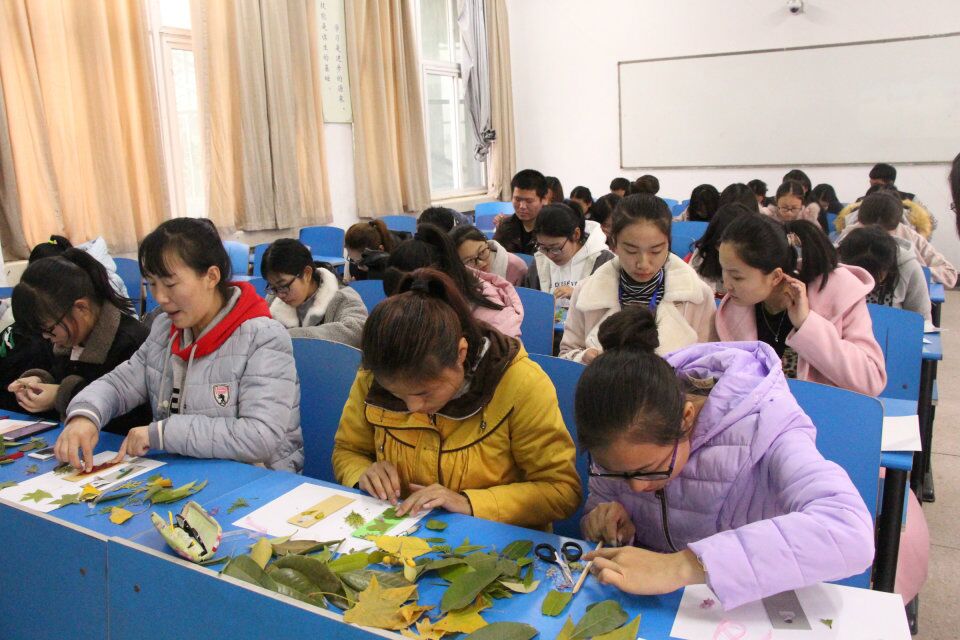活动伊始,环保协会会长谢晓梅简单介绍了此次活动的内容,并向同学们展示了以前的同学制作的植物书签。各种极具特色的书签给同学们带来了灵感,大家都对书签的制作颇感兴趣,跃跃欲试。随后,在工作人员的有序组织下,同学们开始动手制作,有的用铅笔设计构思,有的用工具修剪裁制,活动现场的气氛轻松愉悦。最后,经过同学们认真大胆的创新设计,一个个精美别致的植物书签制作完成。