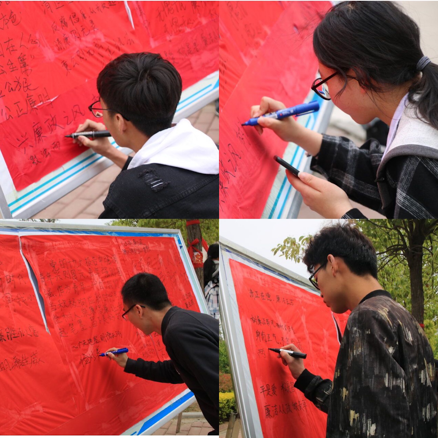 学生积极参与廉洁宣言签名(摄影/刘佳乐 刘泽朋)