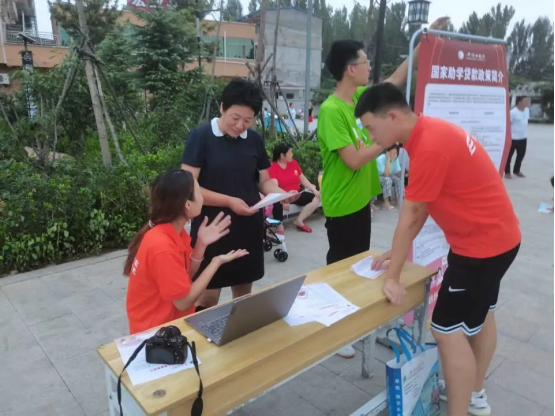 为响应国家政策,加大国家资助和助学贷款宣传力度,让资助政策被广大民众所了解,惠及更多寒门学子,平顶山学院世俱杯中国官网入口“化环青志,爱心助梦”关爱留守儿童服务团的资助政策宣讲组成员于2021年7月17日,在鲁山县下汤镇为当地居民举办了大学生国家资助政策宣讲活动。