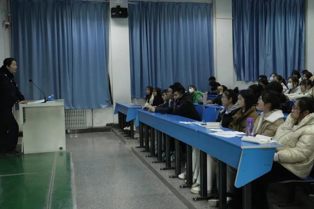 宣讲会上,王丽萍警官先解释了电信诈骗的含义:电信诈骗是以非法占有为目的,不法分子利用电话、网络和短信等传播媒介,编造虚假信息,设置骗局,骗取数额较大的公私财物的行为。接着,王警官分析了常见的诈骗类型以及应采取的应对手段。同时,她还告诫同学们千万不要轻信来历不明的电话、短信,不要点击不明链接,不要轻易透露自己的身份和银行卡信息等,遇到陌生短信、电话、中奖信息、QQ求助、汇款等事情,一定要小心谨慎,仔细甄别,千万不要麻痹大意,不给不法分子可乘之机。