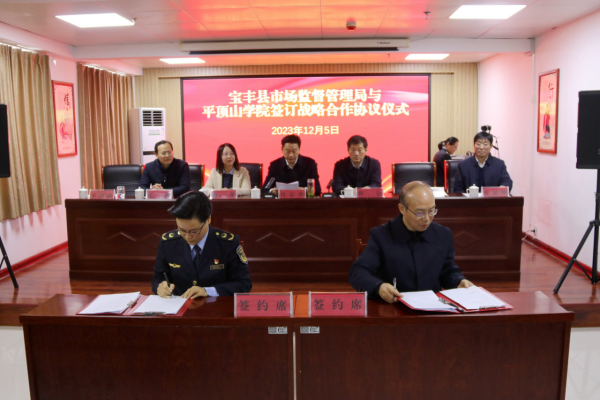 12月5日上午,平顶山学院与宝丰县市场监督管理局签约仪式在宝丰县市场监督管理局会议室举行。我校化学与环境工程学院党委书记曹萍,副院长韩永军,教师代表张晓东、靳瑜等及经济管理学院相关负责人现场参加活动。