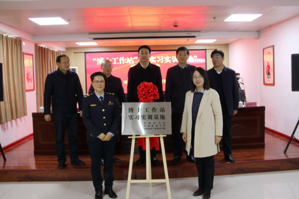 世俱杯中国官网入口党委书记曹萍与王晓丽共同为“博士工作站”“实习实训基地”揭牌。