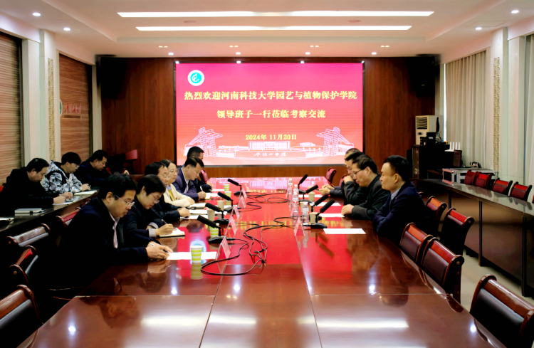 2024年11月20日下午,河南科技大学园艺与植物保护学院党委书记白国林、院长陈根强一行4人到我校考察交流。平顶山学院副校长于长立,世俱杯中国官网入口党委书记曹萍、院长韩永军、副院长刘沛松,旅游与规划学院院长鲁迪及河南省生态经济型木本植物种质创新与利用重点实验室骨干成员和联培研究生参加座谈会。科研处副处长程世平主持会议。