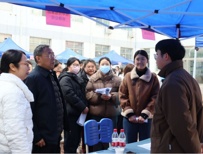 招聘会期间,与会领导及学院党政负责人走访了各个企业招聘展位,与参会企业和毕业生进行了面对面的沟通交流。于长立在与毕业生的交流中,鼓励同学们要保持积极向上的心态,勇于面对就业市场的挑战,尽早确定就业意向。招聘会现场人头攒动,气氛热烈。毕业生们积极与用人单位代表交流,详细了解岗位需求、薪资待遇和职业发展前景。用人单位代表也耐心解答毕业生们的疑问,为他们提供宝贵的求职建议。多家招聘单位负责人表示,学院毕业生专业知识扎实,吃苦耐劳,综合素质全面,希望继续在平顶山学院招贤纳士,引进优质人才。