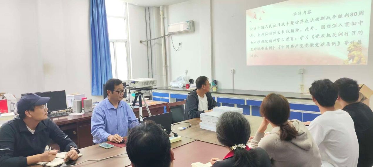 教工第一、第二、第三党支部书记带头领学,系统梳理了习近平总书记《弘扬伟大抗战精神,向着中华民族伟大复兴的光辉彼岸奋勇前进》、《在纪念中国人民抗日战争暨世界反法西斯战争胜利80周年大会上的讲话》等重要论述的核心要义。同时,结合《锲而不舍落实中央八项规定精神 推进作风建设常态化长效化》文件精神,各支部通过互动交流等方式,引导教师党员将理论学习成果转化为立德树人、科研创新的实际行动,筑牢为党育人、为国育才的使命担当。