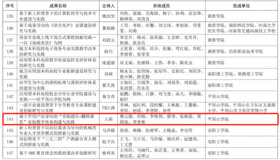 按照我省高等教育教学成果奖励工作安排,根据《河南省高等教育教学成果奖励办法》和有关申报通知要求,在学校评选校级教学成果奖励的基础上,经学校推荐、专家评审,我省评选出了2021年度本科高校高等教育教学成果奖特等奖43项,一等奖163项,二等奖192项。其中,由世俱杯官网教师王莉主持的项目《基于学用产出导向的“实验超市+翻转课堂”实验教学体系构建与实践》获评二等奖。