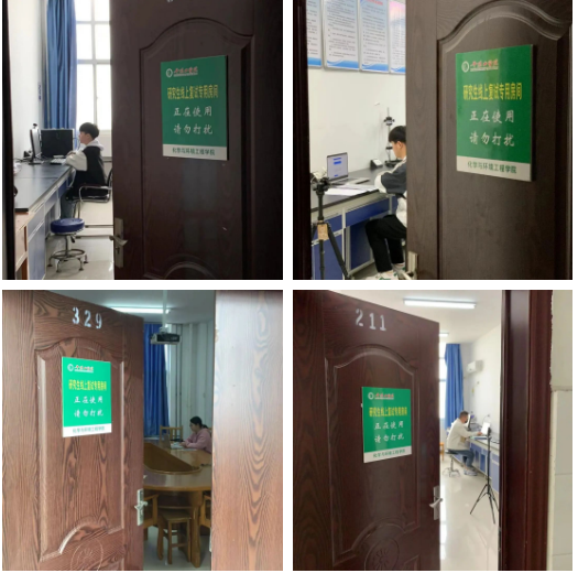 为营造安静的线上复试环境,学院在专用房间外标注统一标识,提醒来往师生注意。同时,联系各房间负责人确保网络通畅及具体房间可用时间。学院老师纷纷伸出援手,腾出办公室或实验室为同学们使用,为同学做好后勤保障。