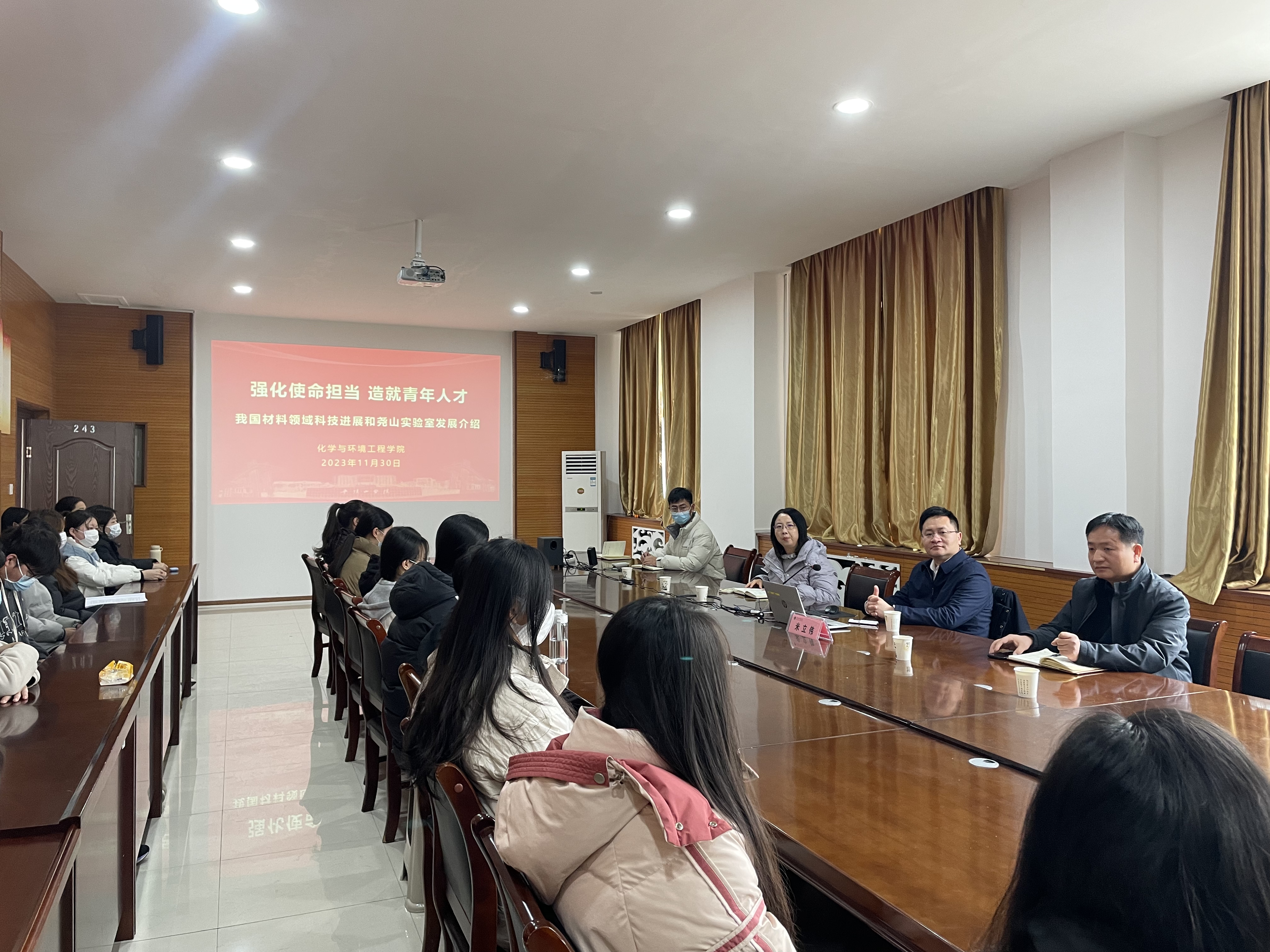 为提升学生对专业发展前景的了解,增强学生对专业学习的积极性,11月30日上午,世俱杯官网邀请副校长米立伟于化工楼243会议室,开展了以“强化使命担当,造就青年人才”为主题的学业指导讲座。本次讲座由世俱杯官网党委书记曹萍主持,世俱杯官网党委副书记贺国旭、全体辅导员及学生代表参加此次讲座。