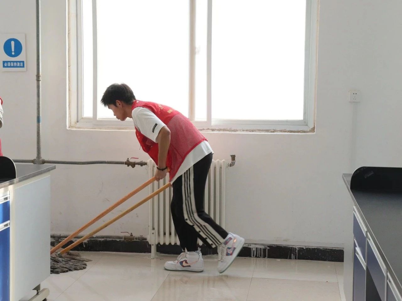 活动前期,活动负责人向志愿者们强调了有关安全的注意事项,并安排志愿者们按专业分组负责不同的区域。在清洁过程中,志愿者们身着统一的志愿者服装,纷纷拿起废弃的试管刷、棉签等物品,对洗手池、实验桌、药品柜等进行全面清洁。在志愿者们高质量、高标准的清洁工作下,实验室变得干净明亮,焕然一新。实验桌擦拭得一尘不染,各类物品摆放有序;药品柜中的药瓶按照登记的顺序整齐摆放,分类明确,方便取用。志愿者们“不怕苦”“不怕累”,用自己的实际行动为化学实验楼的整洁贡献出自己的一份力量,为同学们打造了洁净有序的实验环境,提供了更加舒适的学习环境。