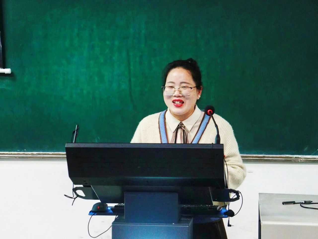 教师教育学院温静雅老师指出,将课程学习与课件制作相结合是一个融会贯通的过程,希望同学们以本次比赛为契机,提升实践能力。化学教研室主任李伟利向同学们讲解了课件制作的五大步骤,这些方法简练使用,同学们认真听讲并记录学习。