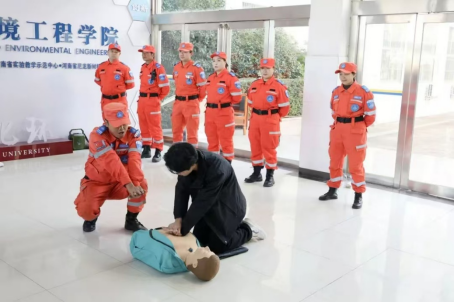 蓝天救援队的队员首先详细讲解了心肺复苏的重要性及操作技巧。他们指出,心肺复苏是一种紧急处理措施,常用于心脏骤停的情况。通过胸外按压和人工呼吸,可以维持血液循环和氧气供应,为后续的医疗救治争取宝贵时间。他们还现场演示了心肺复苏的操作步骤,并邀请同学们进行实践操作,确保每位同学都能掌握这项关键技能。