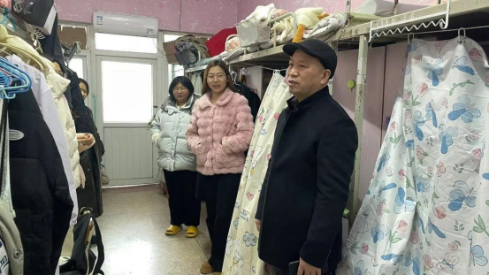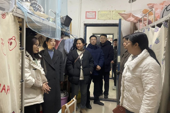 2月22日,学院党委书记曹萍带领班子成员和全体辅导员走访学生宿舍。走访过程中,曹书记就同学们的寒假生活、新学期规划、毕业年级的就业准备进行了交流,提醒大家要注意调整作息,保持良好的生活习惯,以饱满的精神状态迎接新学期。与此同时,辅导员特别关注宿舍的卫生状况以及是否存在违规使用电器的情况,并再次强调了用电安全的重要性,提醒同学们要严格遵守学校的用电规定,确保宿舍的安全与整洁。