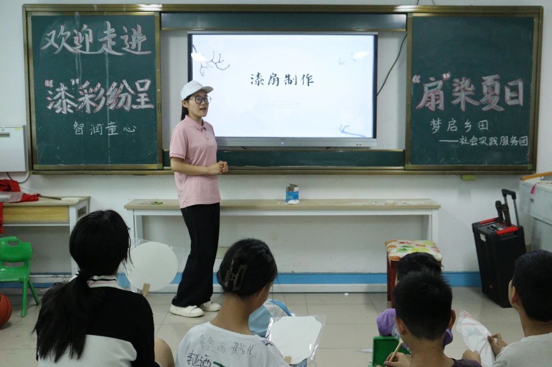 为宣扬中华优秀传统文化,弘扬非物质文化遗产,7月9日,世俱杯官网“智润童心,梦启乡田”社会实践服务团在鲁山县文智留守儿童学校开展“‘漆’彩纷呈,‘扇’染夏日”创意漆扇制作活动。