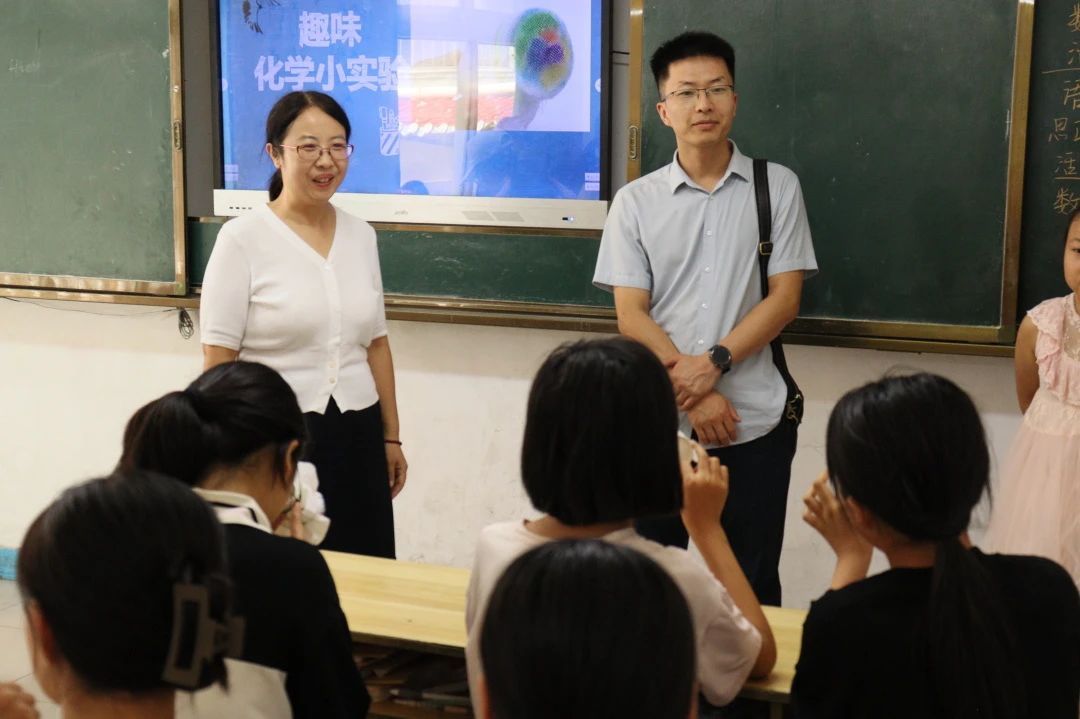 学院领导为志愿者们带来酸奶等食品,细致关怀他们的日常生活情况,并亲切询问在生活中遇到的困难。随后步入教室,只见志愿者正引领孩子们探索化学的奥秘,孩子们眼中闪烁着求知的光芒。领导们对志愿者发挥专业所学为乡村教育注入活力给予高度评价。