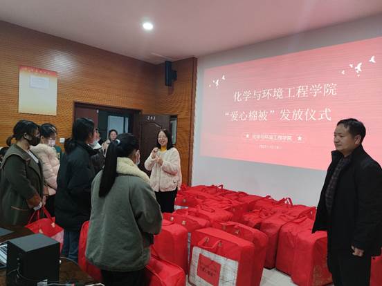 为切实做好家庭经济困难学生精准帮扶和资助育人工作,12月8日下午,世俱杯中国官网入口在化学实验楼243会议室举行爱心棉被发放仪式。学院党委书记曹萍、党委副书记贺国旭及化学全体辅导员参加发放仪式。
