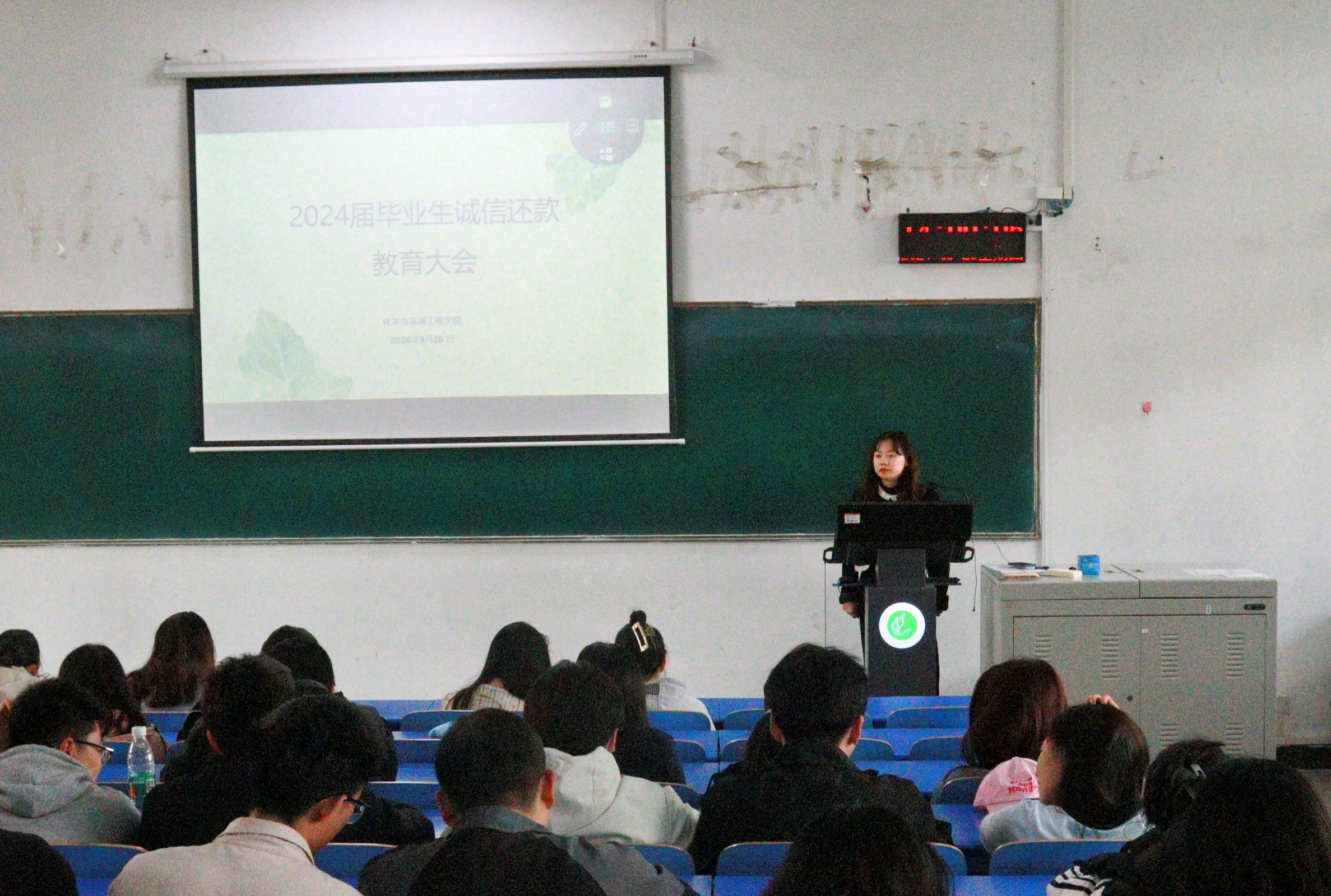 为深入贯彻落实立德树人根本任务,全面宣传党和国家的学生资助政策,充分发挥资助育人功能,增强毕业生的诚信意识和责任意识,世俱杯官网于5月13日在4113开展2024届贷款毕业生诚信还款教育大会。本次会议由张慧卿老师主讲,2024届全体办理助学贷款的学生参加此次会议。