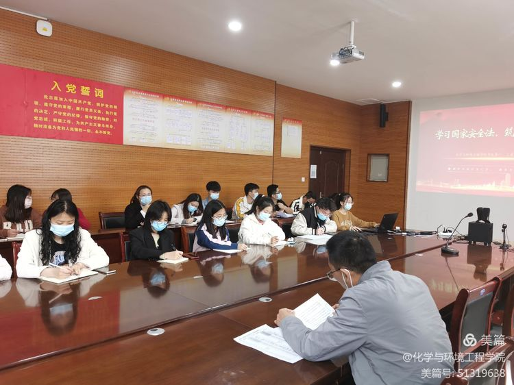 学生党员代表领读反分裂国家法、网络安全法、生物安全法、反恐怖主义法内容,共同观看防灾减灾宣传视频,学习把握习近平法治思想深刻内涵,牢固树立法治观念,从自身做起积极维护国家安全。
